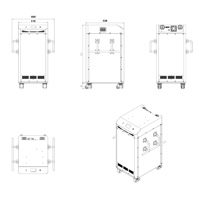 Heavy-duty enclosure with integrated lifting system and wheels, allowing easier transportation and installation despite its high-capacity build.